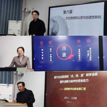 张磊老师参加课程思政教学校赛决赛,他以《“文化传统”与“传统文化”义辩》为题进行了15分钟的教学展示。两位专家分别围绕课程教学设计与思政元素如何融入等提出针对性的润色、修改建议,并解答了教师提出的相关问题,围绕如何有效挖掘和凝练课程思政元素及参赛注意事项进行了详细的指导。