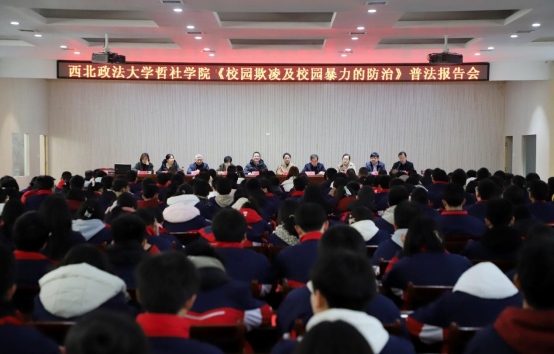 随后,团队一行来到“道德讲堂”,由李岚林副院长为山阳中学近500名师生开展普法讲座。李岚林以《校园欺凌与校园暴力的防治》为题,结合学生的心理、生理特点,用通俗易懂、活泼生动的语言,围绕“什么是校园欺凌、校园暴力”、“校园欺凌、暴力的具体表现”、“校园欺凌、暴力的应对”、“校园欺凌、暴力的防治”四个方面,通过以案释法、以案学法的方式,让学生们系统了解校园欺凌、暴力的实质、成因与防治,教育引导学生提高防范意识,学会自我保护,坚决抵制校园欺凌、校园暴力,避免违法犯罪行为。讲座内容丰富精彩,引起在座师生的广泛共鸣,现场掌声不断,气氛热烈。