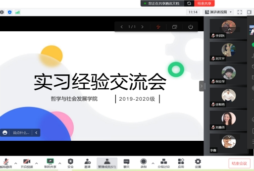 组织2019级、2020级参加专业实习的学生们召开线上实习交流会,会议由绅士漫画