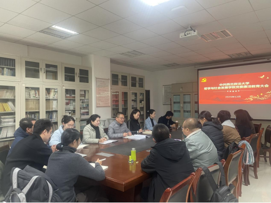 党委在学院会议室召开廉洁教育大会,学院领导班子成员、各党支部书记、教研室主任、行政干部及师生代表参加会议,会议由院党委书记寇汉军主持。