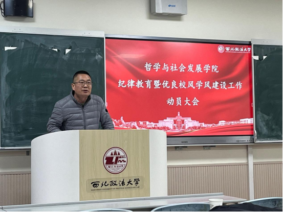 学风建设所取得的成绩和存在的问题,他指出,学风建设是落实立德树人根本任务的重要抓手,是促进学生聚焦主责主业、全面成长成才的重要保证。要紧紧围绕学院中心工作,聚焦“积极维稳、精准思政、严格管理、精细服务、提升能力、强化作风”,以高质量党建推动高质量学风建设工作。要坚持问题导向,不断完善学风建设机制,把学风建设作为一项重要工作抓紧、抓细、抓实,让好的学风成为学院的亮丽风景线。