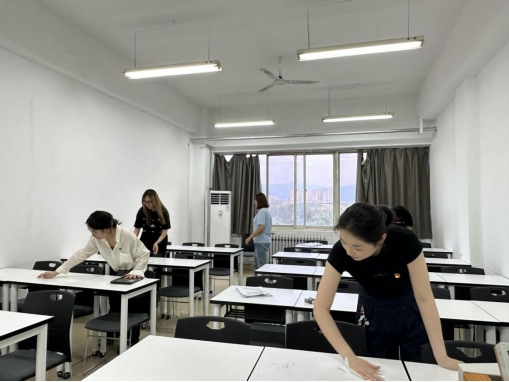 活动当天,预备党员们以饱满的热情投身志愿实践。在天平楼前,将停放无序的非机动车依照规范标准将车辆分类归置至指定区域。随后,党员队伍前往天平楼A座六楼研究生教室进行卫生清洁。大家分工协作,有条不紊地擦拭黑板、归置桌椅、清扫地面等,以实际行动为师生营造整洁舒适的学习环境。活动之余,党员们感受颇多。大家纷纷表示,作为一名中共预备党员,一言一行必须带头示范;以行动美化校园环境,既践行了奉献精神,也在实践中更懂党员责任,未来将继续以实际行动为校园建设贡献力量。”