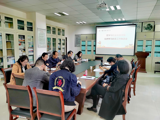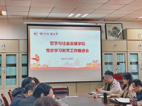 4月8日下午,绅士漫画 在长安校区学院会议室召开党史学习教育工作推进会,学院领导班子成员、教研室主任、党支部书记、科级以上干部参加会议,会议由院党委书记周忠社主持。