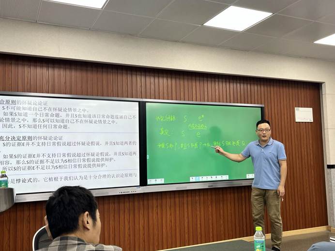 在与学生互动环节中,同学们提出了一些问题,如“教学活动是否可以作为有效的自我辩护方式”以及“在维特根斯坦那里不可质疑的逻辑是先验的还是经验的”。王聚副教授耐心细致地回答了问题,帮助同学们深化对讲座内容的理解,拓宽视野。最后,讲座在热烈的掌声中圆满结束。