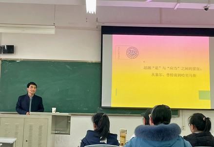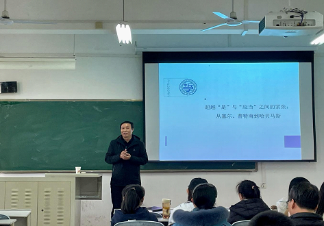 讲座结束后,郭明俊教授对胡军良教授的精彩报告做了简要的点评。他指出,讲座循序渐进、逻辑严谨、内容充实、使大家拓宽了视野、增长见识,更加唤醒了同学们对哲学学习和探索的兴趣。