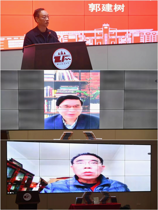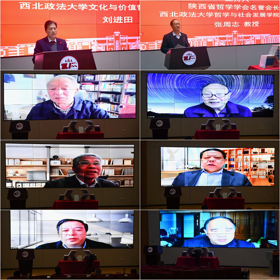 来自中国政法大学、武汉大学、中山大学、上海大学、湖北大学、西安交通大学、陕西师范大学、西北大学等国内十余所高校80余名专家学者云端相聚,交流研讨。陕西省社会科学界联合会党组书记、常务副主席郭建树,中国社会科学出版社总编辑魏长宝,陕西省哲学学会会长曹飞,陕西省政协常委、教育科技委员会主任董小龙,中国刑法学研究学会会长、浙江省人民检察院党组书记、检察长贾宇,绅士漫画 原党委书记宋觉,西安市人大常委会副主任杨宗科,校党委书记孙国华、副校长王健、张荣刚参加座谈会。开幕式由校长范九利主持,闭幕式由副校长马朝琦主持。
