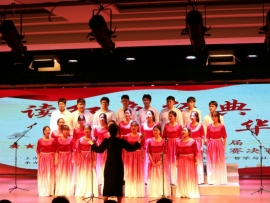 马克思主义学院院长魏奇担任大赛评委,他高度肯定了选手们的精彩表现,并即兴朗诵《沁园春·长沙》,将现场气氛推向高潮。校合唱团为大家带来《黄水谣》和《保卫黄河》。