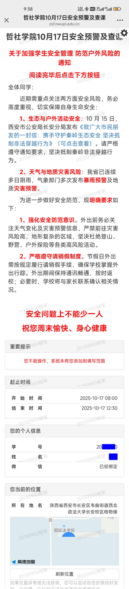 迅速行动,全面开展预警信息发布与人身安全教育工作,实现安全提醒全覆盖、无遗漏。