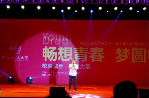 康峰带来的是他自己的原创歌曲《指尖上流淌的青春》,在上个学期康峰就曾参加政法好声音并取得了亚军,因此他的表演也是当场备受关注的一个焦点。主持人报幕时,台下就响起了热烈的掌声。当晚康峰抱着吉他出场,自弹自唱的姿态引来了阵阵尖叫。这首原创曲词优美,曲调轻快,旋律悠扬,表现出青春的活力、张扬和爱情的美好。