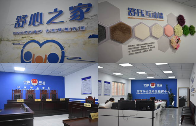 调研团队一行首先到达玉环市司法局及玉环市社区矫正中心,由工作人员带领参观了VR室、团体辅导室、沙盘绘画室、心理咨询室、宣泄室等集多功能于一体的“心灵驿站”。