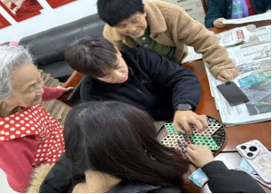 专题活动结束之后,值班同学围坐在离退处老师身边,主动关切地询问起老师们的日常起居与健康状况。交流中,老师们也打开了话匣子,向同学们讲述过去在政法校园里的难忘经验,分享为人处世的人生智慧;同学们则认真倾听,主动向老师介绍当下校园里的新变化、学科建设的新动态。结束之际,同学与老师一起玩起了跳棋,这场小小的跳棋游戏更是充满了欢声笑语的陪伴与温情。