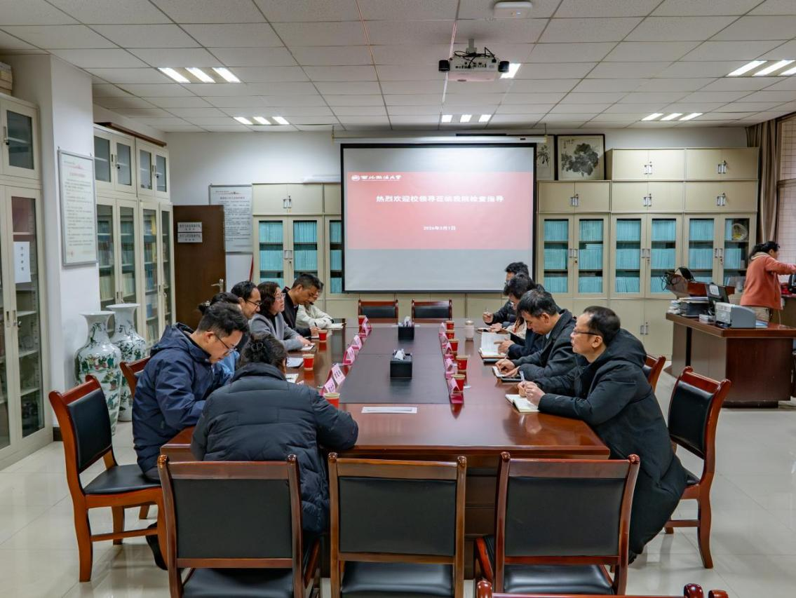 ,检查指导学院开学准备情况和新学期重点工作安排,学校发展规划与学科建设处处长宁卫立、财资处处长孙静、资产运营处处长翁晓磊、发展规划与学科建设处秘书白璘陪同检查。学院领导班子全体成员参加座谈。