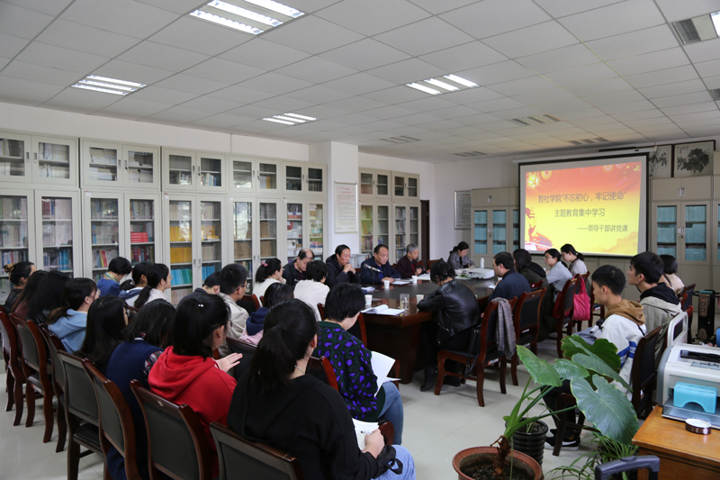 周忠社以《不忘初心、牢记使命,持之以恒抓好基层党建工作》为主题,结合学院工作实际,围绕新时代如何抓好基层党建,带领大家进行了共同学习和探讨。首先,要深刻认识用习近平新时代中国特色社会主义思想武装全党的重大意义;要深刻认识推进新时代党的建设的重大意义;要深刻认识保持党同人民群众血肉联系的重大意义;要深刻认识实现党的十九大确定的目标任务的重大意义。接着,他指出,要精准把握主题教育的目标要求。重视理论、加强学习,确保学懂弄通做实;对党忠诚、传承基因,务必坚定信仰信念;敢于担当、善于作为,提振干事创业的精气神;坚守立场、破解难题,始终以人民为中心;保持本色、坚守底线,争做清正廉洁表率。最后,他结合学院近几年党建工作和主题教育活动等情况,详细说明学院始终以政治建设为统领,以落实党政联席会等制度为主线,着力发挥学院党委政治核心作用、党支部战斗堡垒作用、党员先锋模范带头作用为,扎实推进学院党建工作。