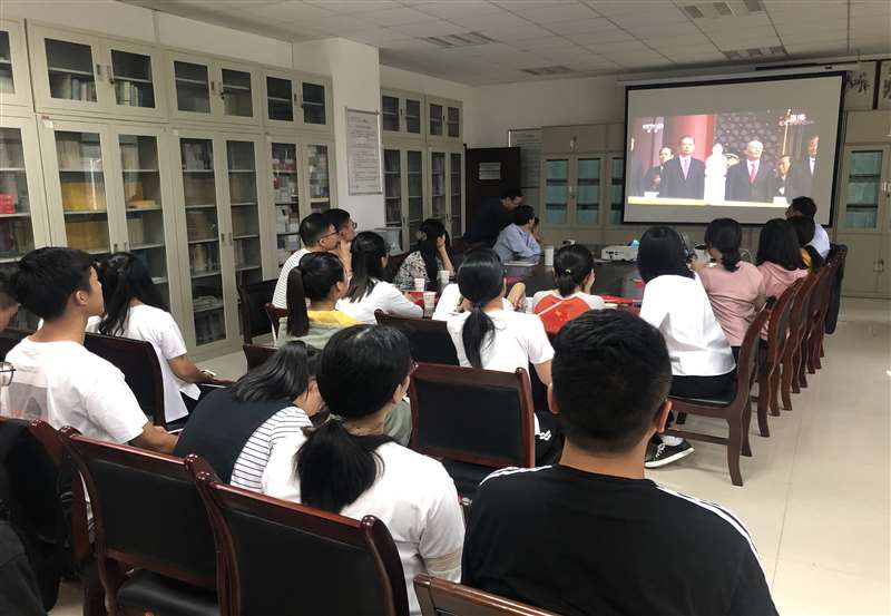 10月1日上午,庆祝中华人民共和国成立70周年大会在北京天安门广场隆重举行。在这举国欢庆的时刻,哲社学院院长山小琪、院党委副书记、副院长赵玎玎、教师代表及学生代表学院资料室观看了现场直播,共同见证了这一激动人心的历史时刻。
