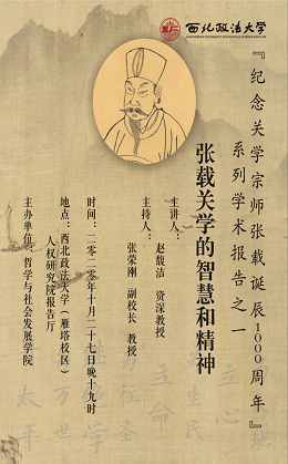 “纪念关学宗师张载诞辰1000周年”系列学术报告开讲——赵馥洁教授主讲“张载关学的智慧和精神”